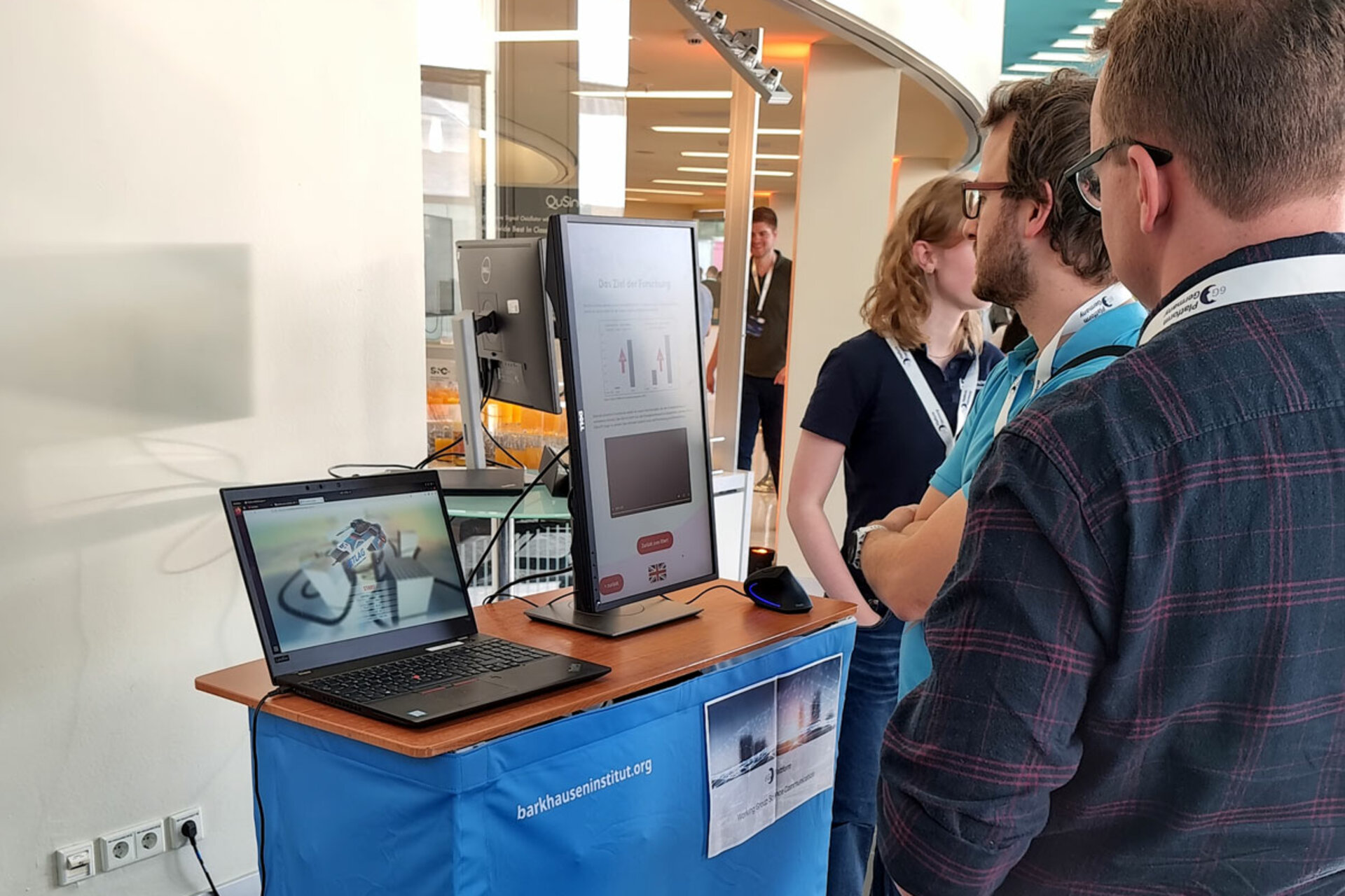 Carolin Fischer aus der Wissenschaftskommunikation organisierte sowohl eine Session - bei der Christian Raupach vom Bundesamt für Strahlenschutz sowie Flavia Maragno vom Projekt 6G4Society als Sprecher auftraten - als auch einen Stand.