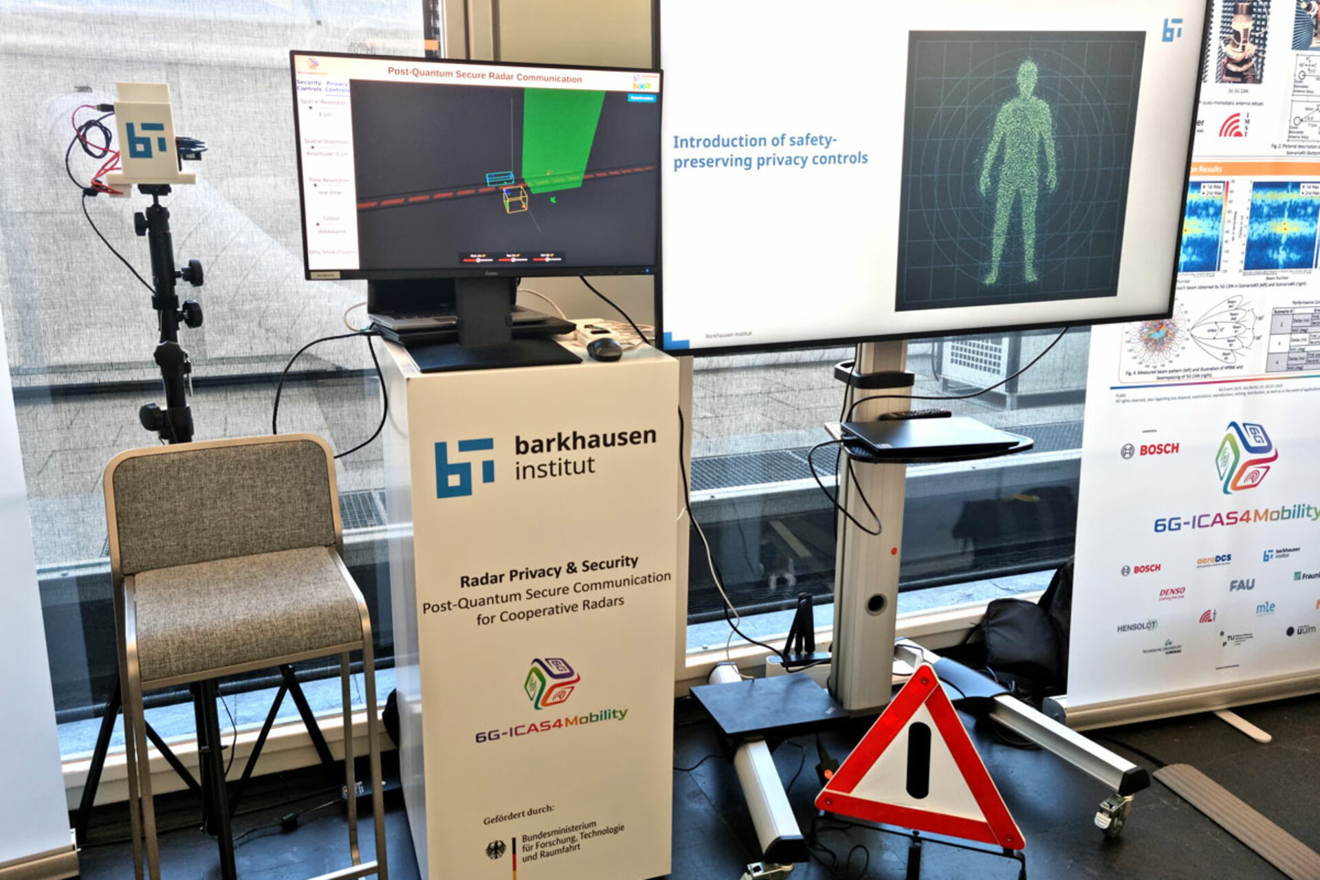 Die Forschungsgruppe Trustworthy Data Processing präsentierte die drei Demonstratoren „CampuSens AGV Rollercoaster“, „Post-Quantum Secure Communication for Cooperative Radars“ und „Ready for Critical Use?!“.